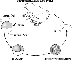 View the image (40 kb)Description: Fertilization of a Xenopus egg is followed by cleavage (a succession of cell divisions that partition the large fertilized egg cell in smaller cells), differentiation and organogenesis. After hatching from the egg, the tadpole will exist in an aquatic stage with gills and a tail, until complex hormonal changes transform it into an adult frog. (Posted on 08/03)